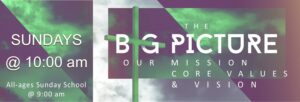 The vision of our church is to honor God by growing together in the grace and knowledge of Jesus Christ, to live and share the good news of His love and forgiveness in a needy world, to worship the living God with all our hearts, souls, and minds, to serve one another with the gifts God has given, and to live daily in His presence through the power of prayer.